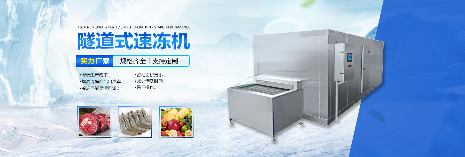 隧道式速凍機是在短時間內,把速凍的物品溫度凍達到-18°,30分鐘內快速通過冰晶生產帶(0到-5度區間)…